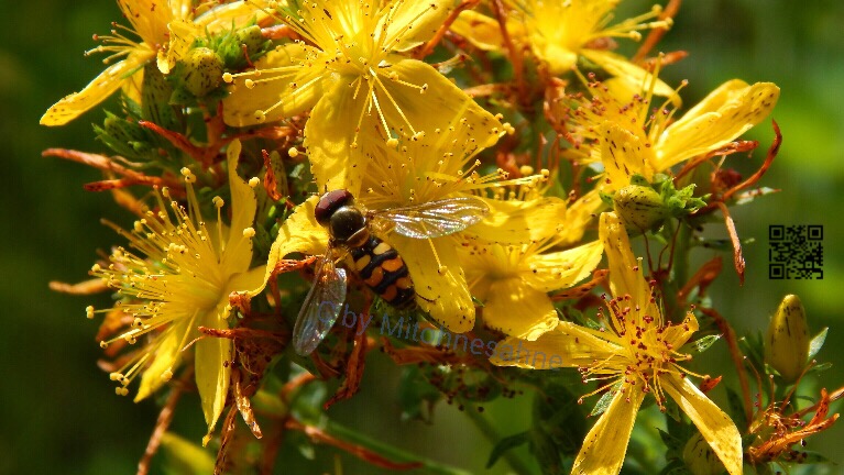 Das ist eine Fliege, die sich als Wespe getarnt hat. Sie kann nicht pieken, dafür aber in der Luft „stehen“.