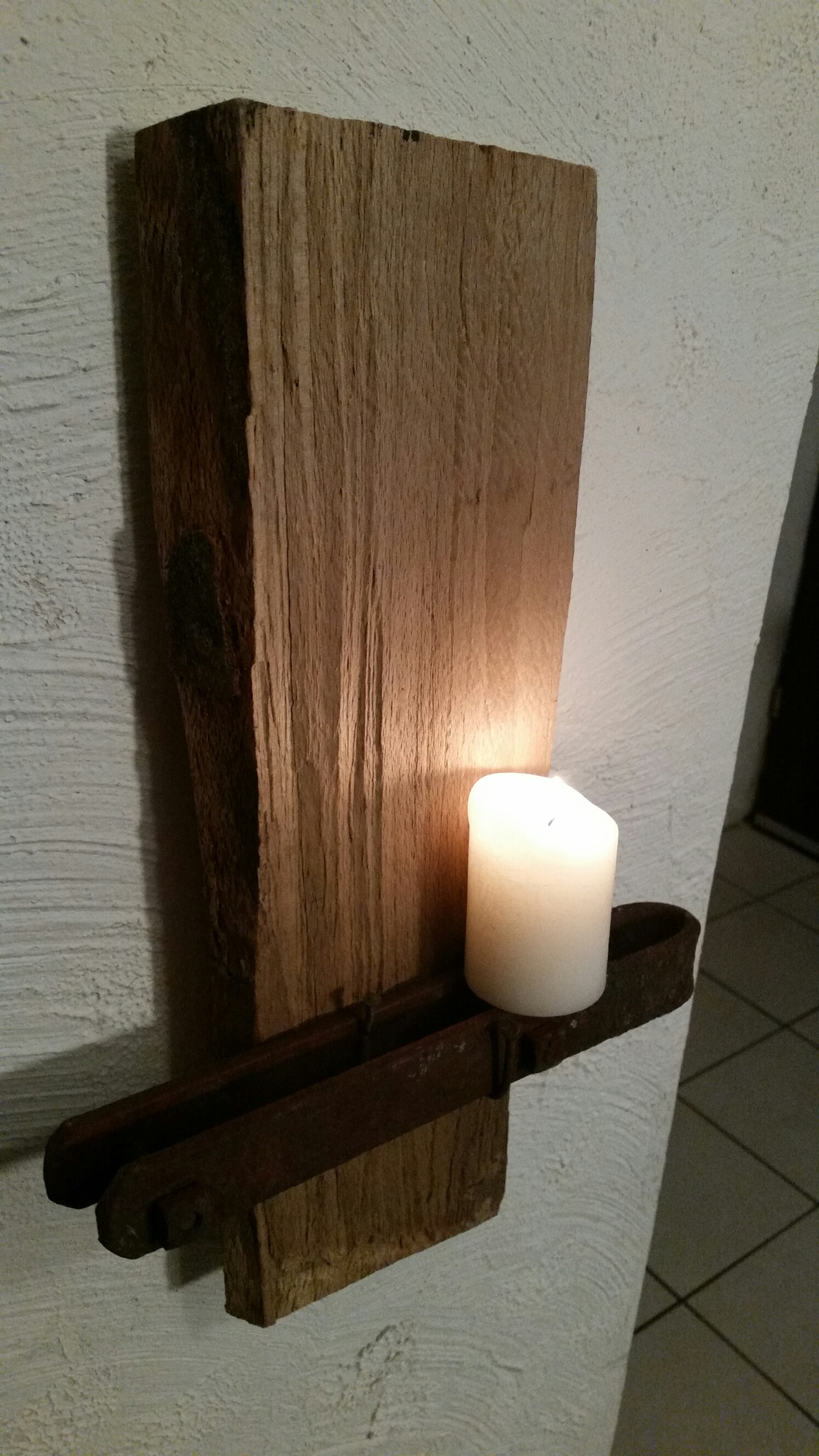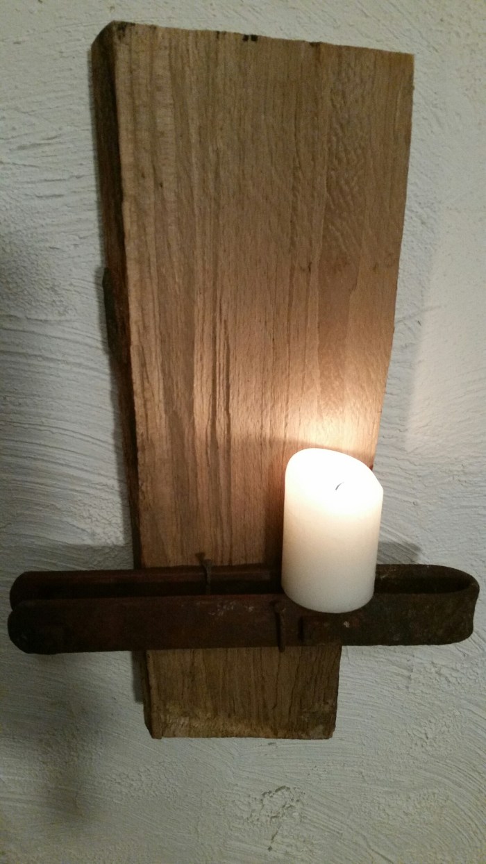 Kerzenträger aus Holz und Eisen