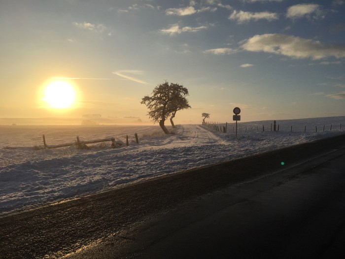 … schnappe ich mir den Hund und die Gummistiefel, ziehe mich warm an und laufe los. An der nächsten Ecke patsche ich mit den Füßen bis zum Knöcheln in den Bach. Pitsch- patsch. Nur meine Stiefel und ich … Der Hund schaut verwirrt zu.