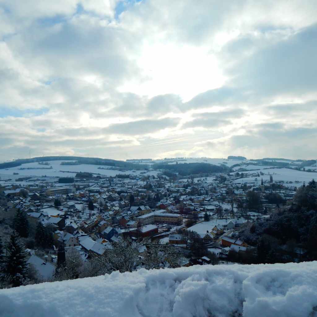 Hier liegt Schnee. Dieses Foto ist zwar von 2018, von mir, aber es sieht dort genauso aus, im Moment. Schönecken/Eifel.