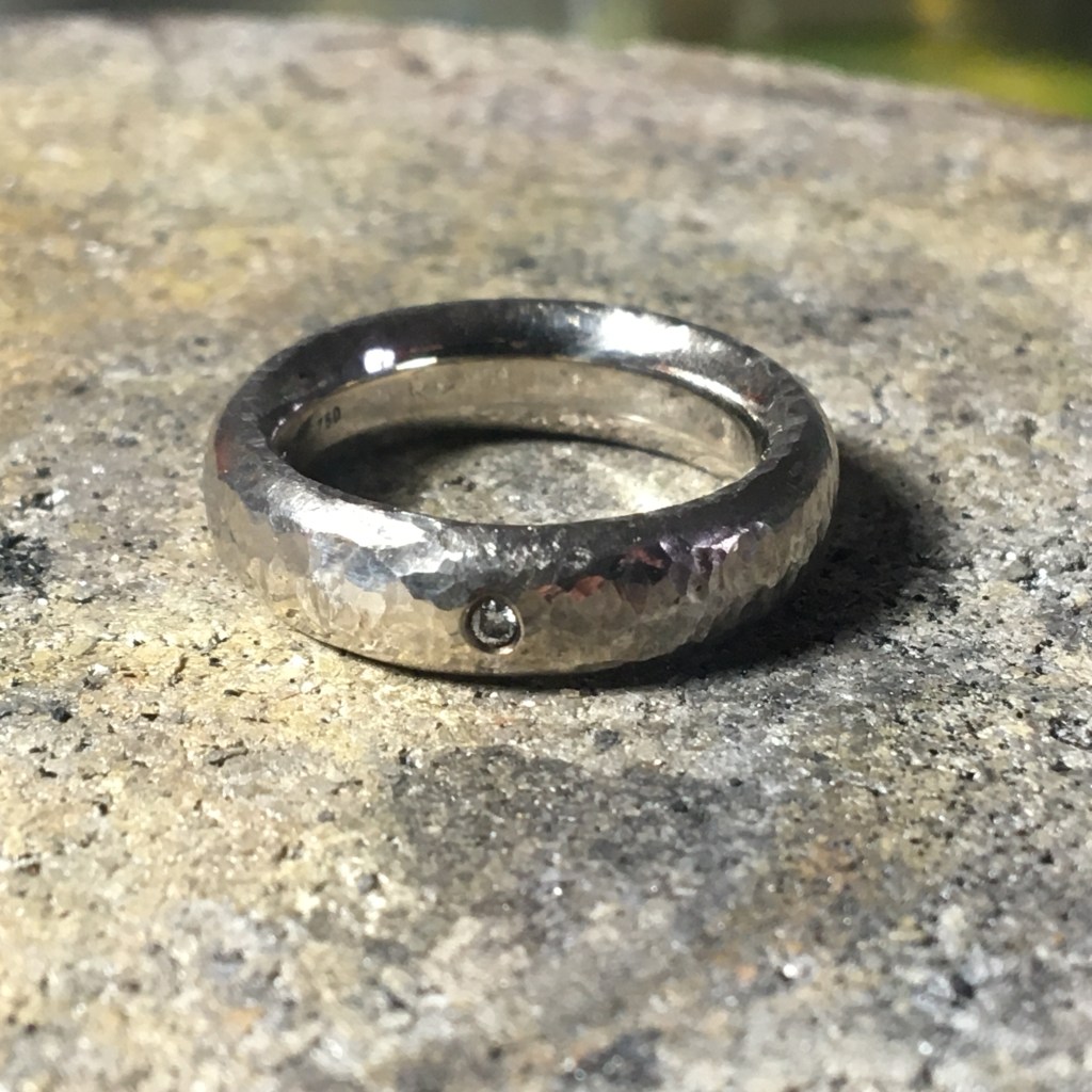 Mit kleinem Brilli. Handgemachtes Unikat. Gehämmert. Einzelstück. 750WG