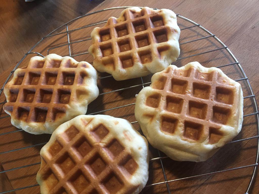 Ein Waffeleisen und Schokoglasur…meistens schaffen die es bei uns nur bis zum Vanilleeis und den Erdbeeren. Nicht bis zur Glasur.😂😂😂