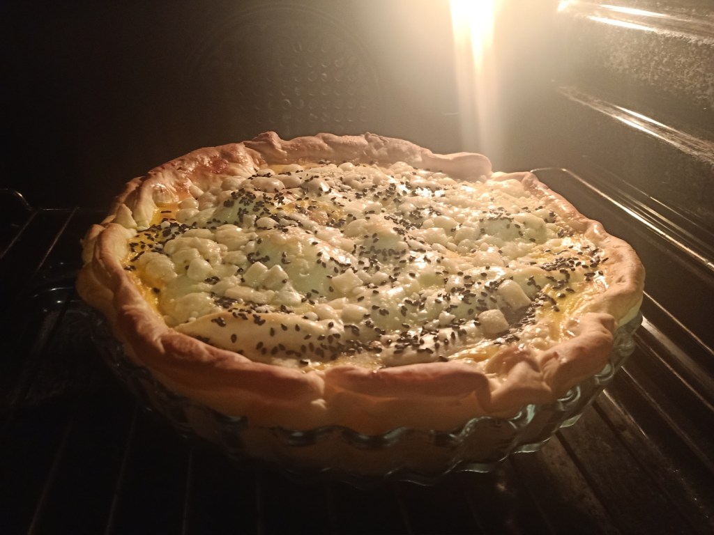 Mit dem Tiefkühlspinat und dem Hack füllen. Also beides locker verteilen, Käse und Gewürze drauf und dann die zweite Teigplatte. Mit Ei den Rand zukleben und mit der Gabel dann oben einstechen. Damit die Luft entweichen kann. Mit dem verquirlten Ei bestreichen, mit Sesam bestreuen und ca.1 Stunde bei 180 Grad backen. Achtung, Backzeit variiert von Backofen zu Backofen. Ich heize nicht vor und backe Ober- Unterhitze.