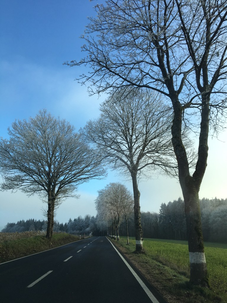 Schnee Es ist kalt… der Schnee ist zwar weg, aber der Reif bleibt auf den Bäumen… Handyschnappschuss.. nicht wirklich erkennbar