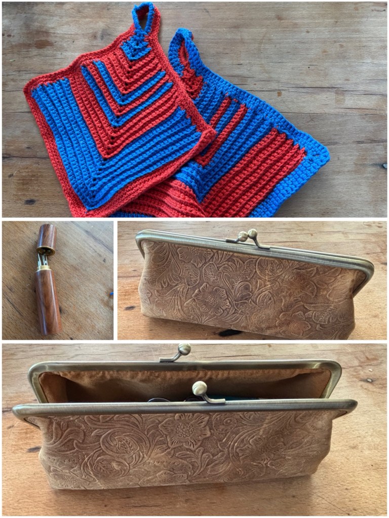 Und Nadeln in der tollen Dose, so tun, als hätten sie einen Plan. Braucht man eben immer als Frau. Stopfnadeln in der Tasche! Falls ich Topflappen häkel, greife ich rein und finde meistens irgendwas Brauchbares. Oder freue mich über das tolle Teil. Fühlt sich auch gut an, sieht super aus.