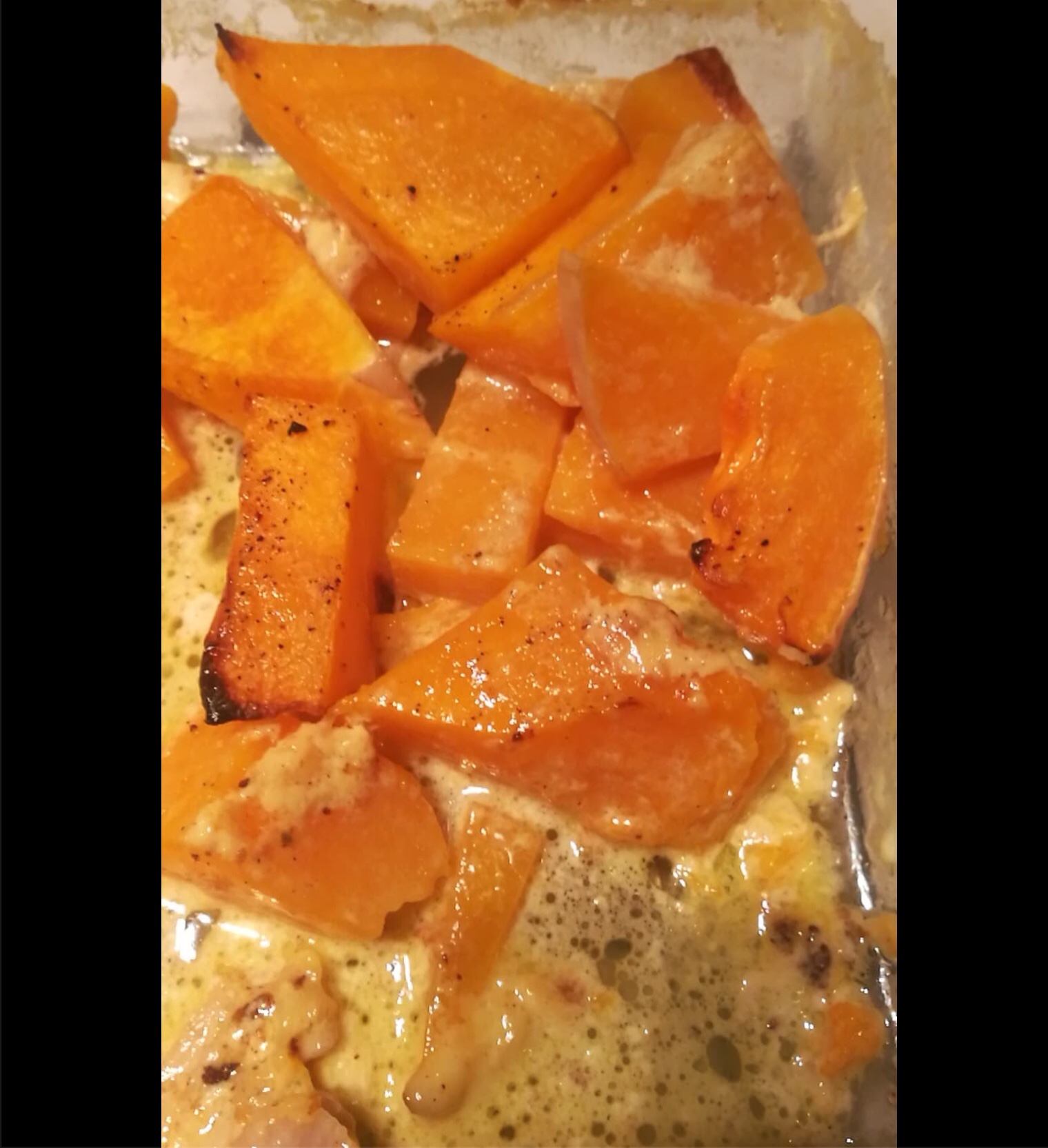 In der Zwischenzeit den Kürbis mit Butter und etwas Ahornsirup weich braten.