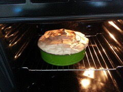 Mit 1 cm Abstand zum Rand, wolkenartig auf dem Kuchen verteilen.